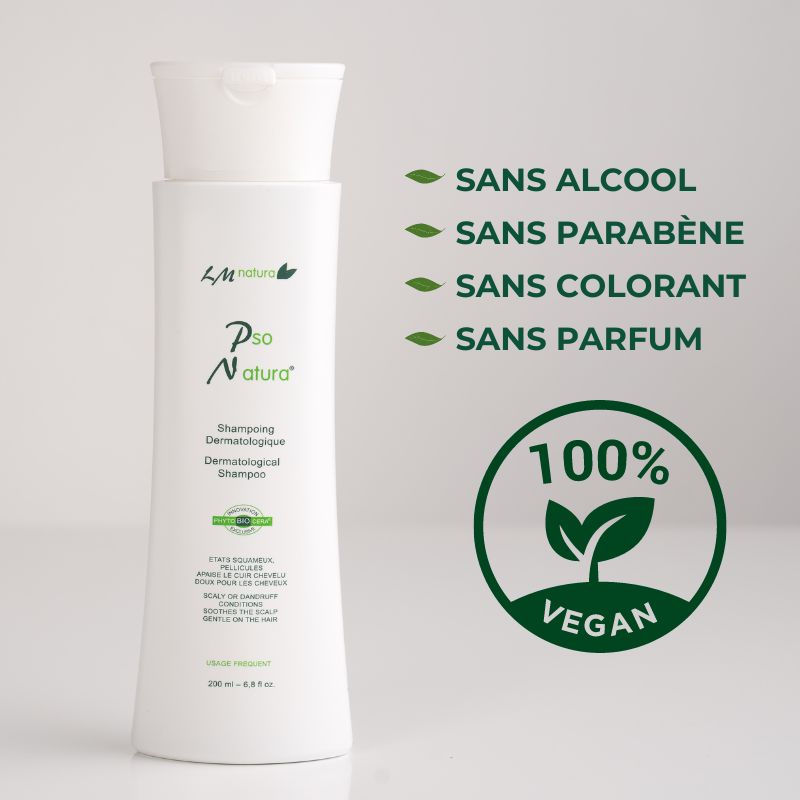 Le Shampoing Dermatologique Pso Natura est formulé sans parabène, EDTA, parfum ou colorant de synthèse. Il a été testé dermatologiquement, sans test sur animaux.